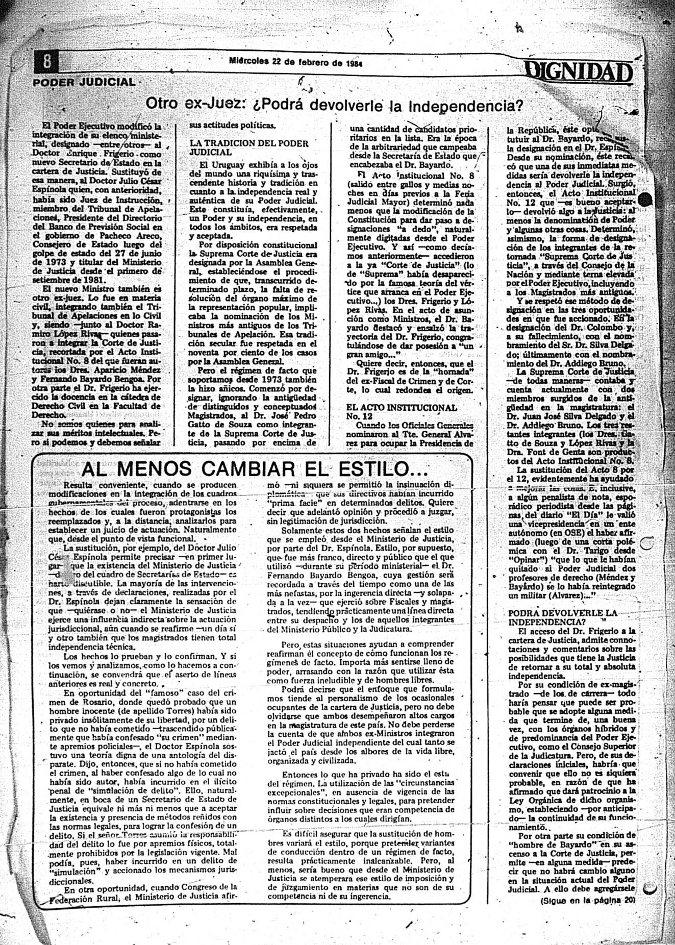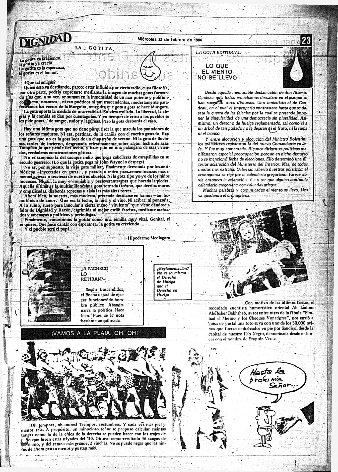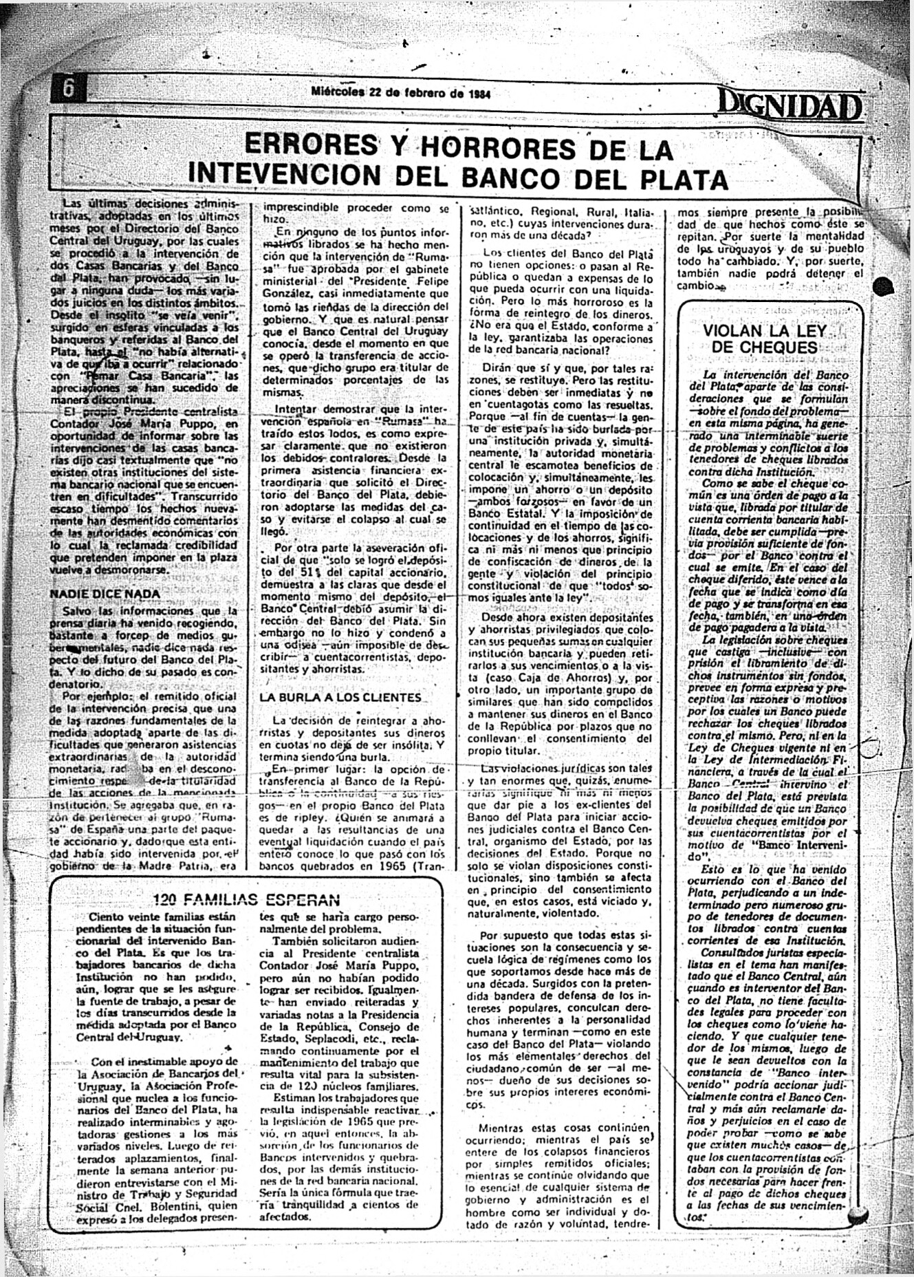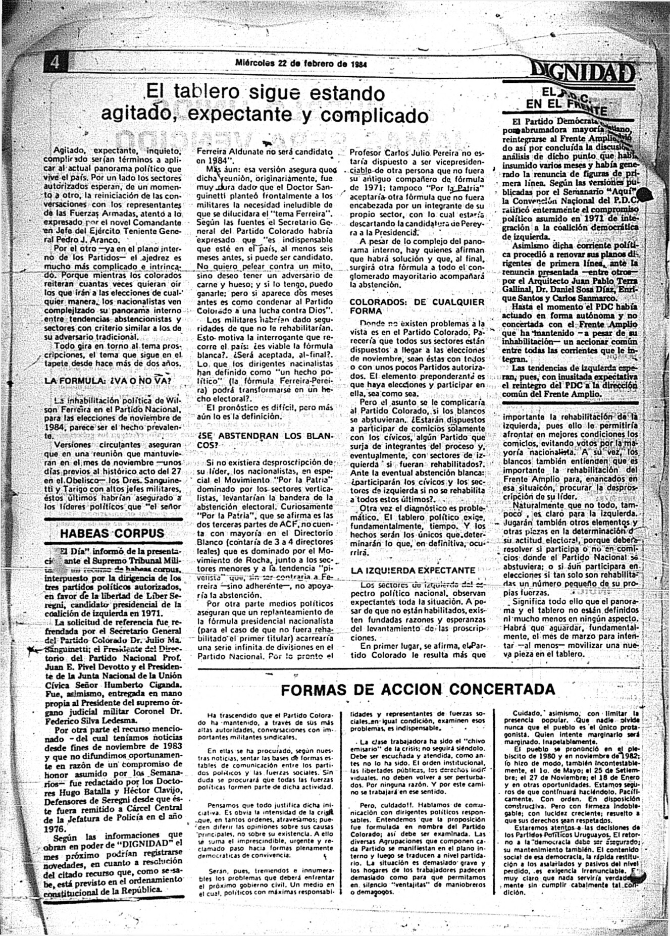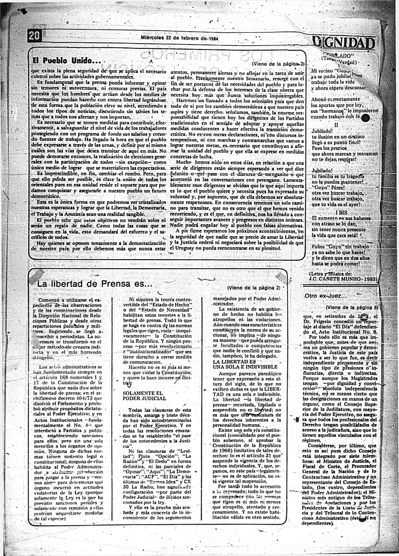 La publicación no está fechada, aunque por su contenido se estima que se publicó en enero o febrero de 1984.
