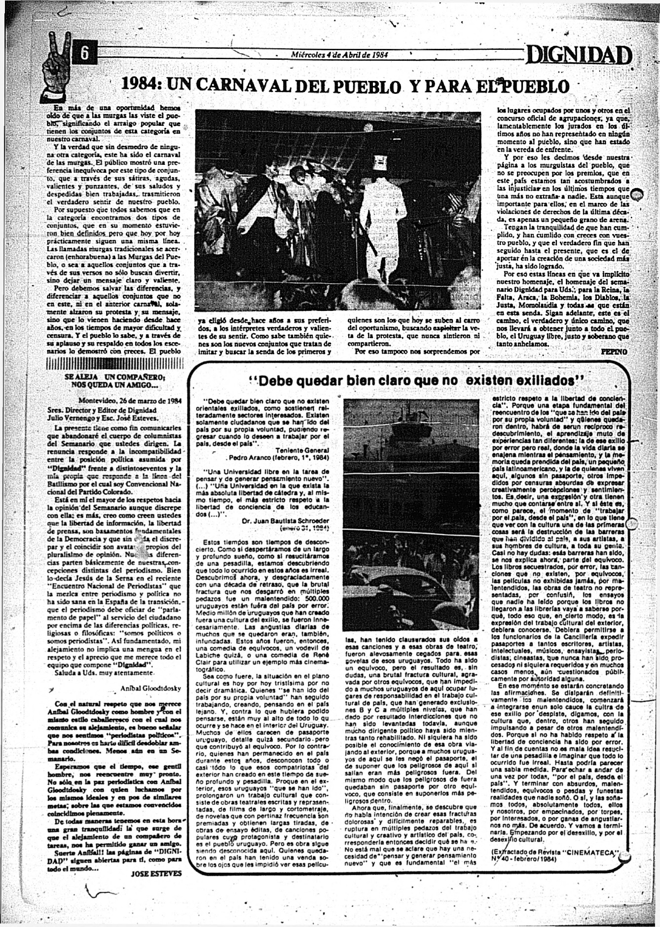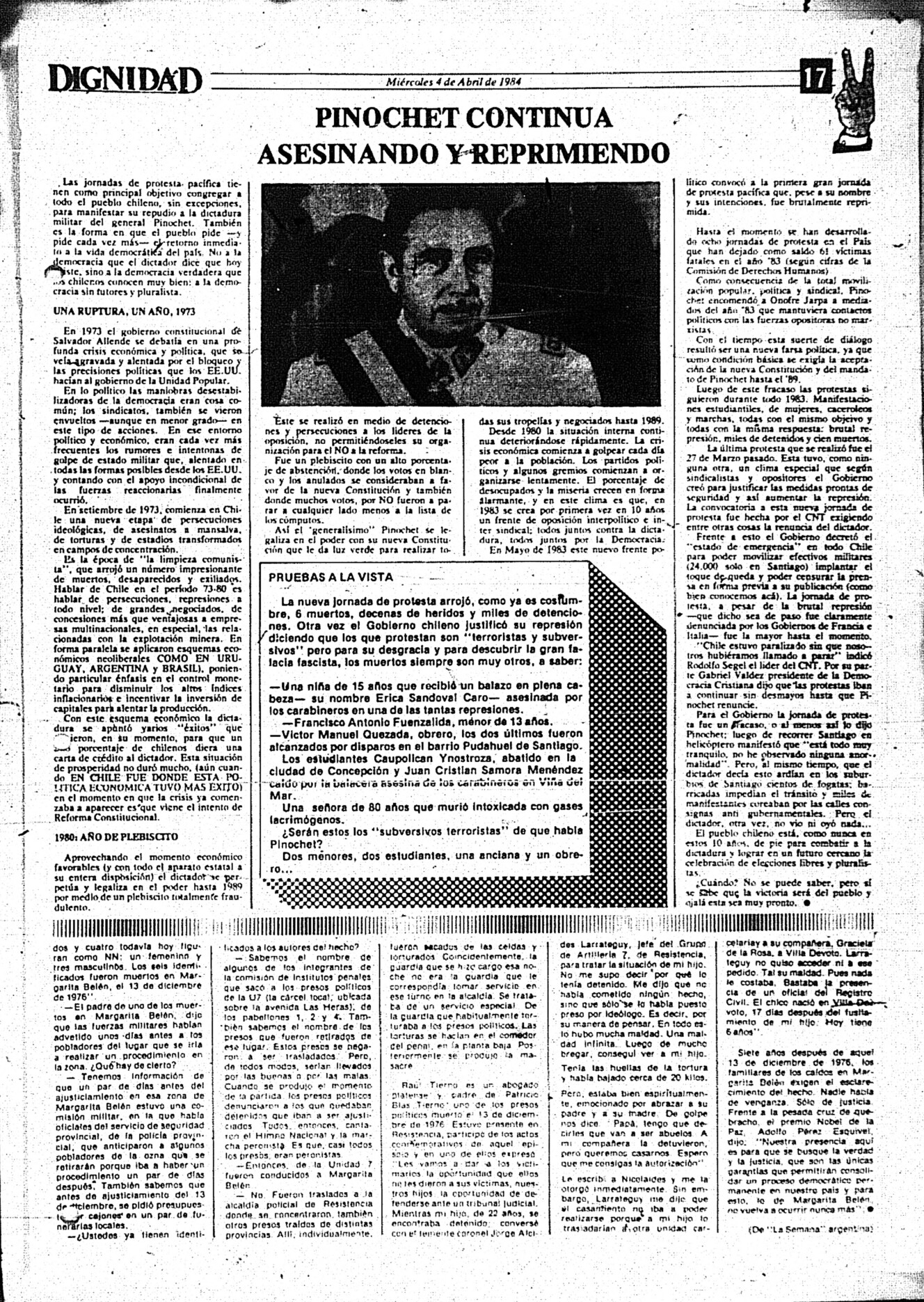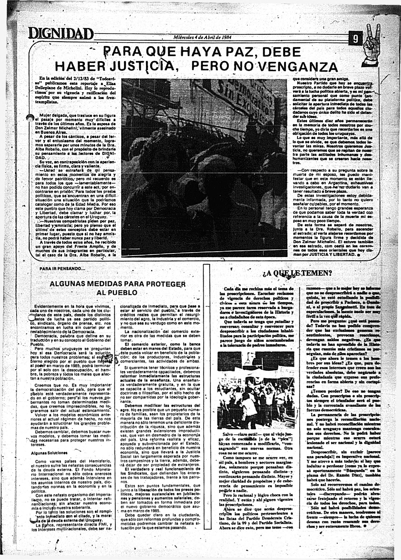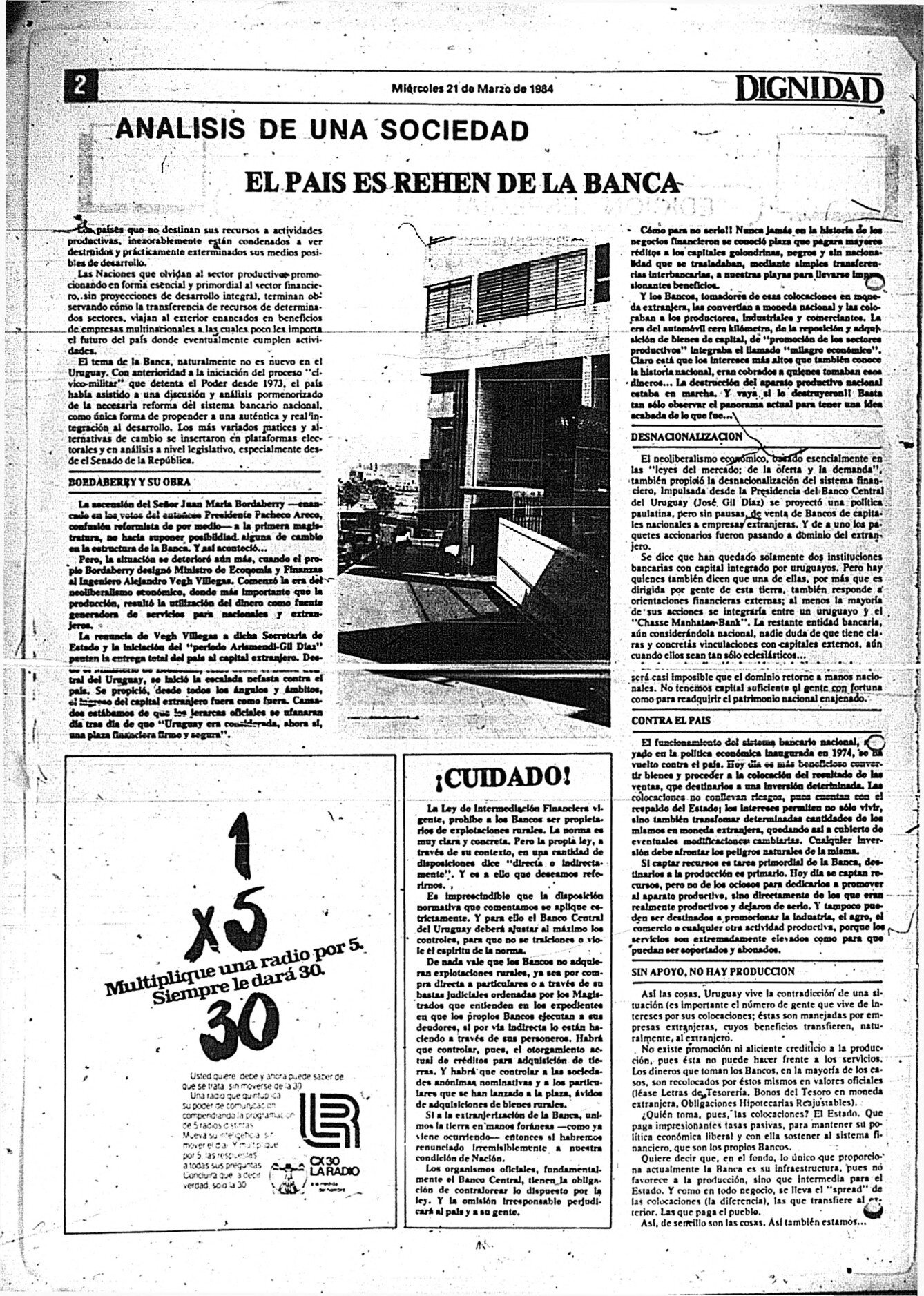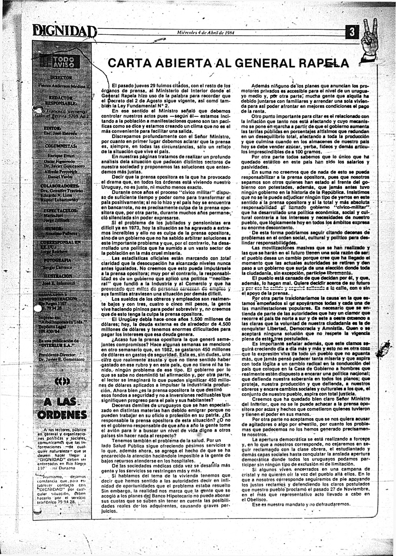 Esta nota, publicada el 22 de abril de 1984, constituye una nueva reproducción por parte de El País, de la versión oficial sobre hechos represivos de la dictadura. A través de un comunicado de la DINARP (Dirección Nacional de Relaciones Públicas), el diario reproduce la versión militar sobre la muerte de Vladimir Roslik, un médico de San Javier, intentando encubrir lo que hoy se reconoce como el último asesinato por tortura de la dictadura.