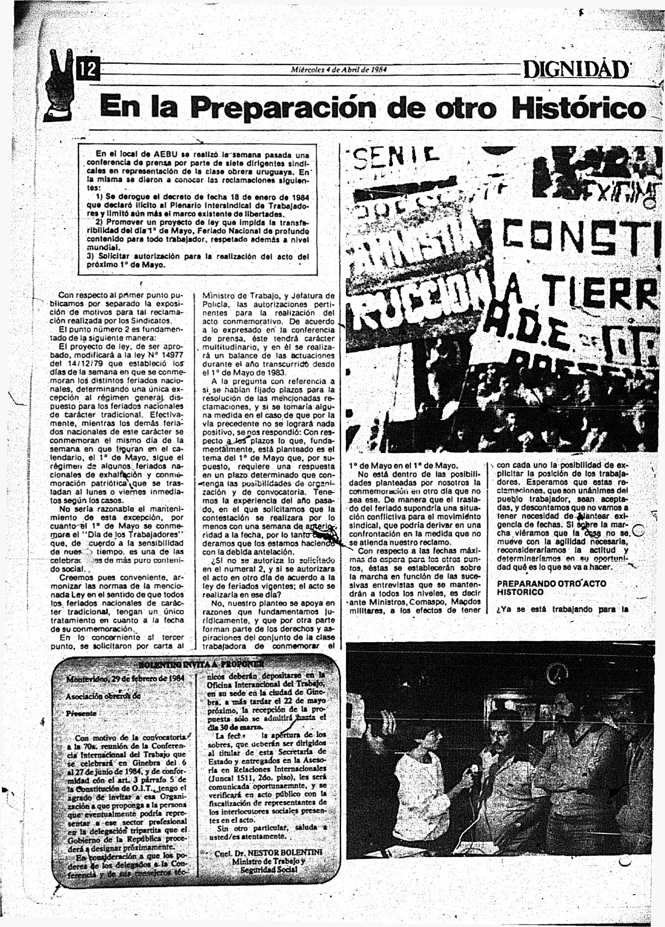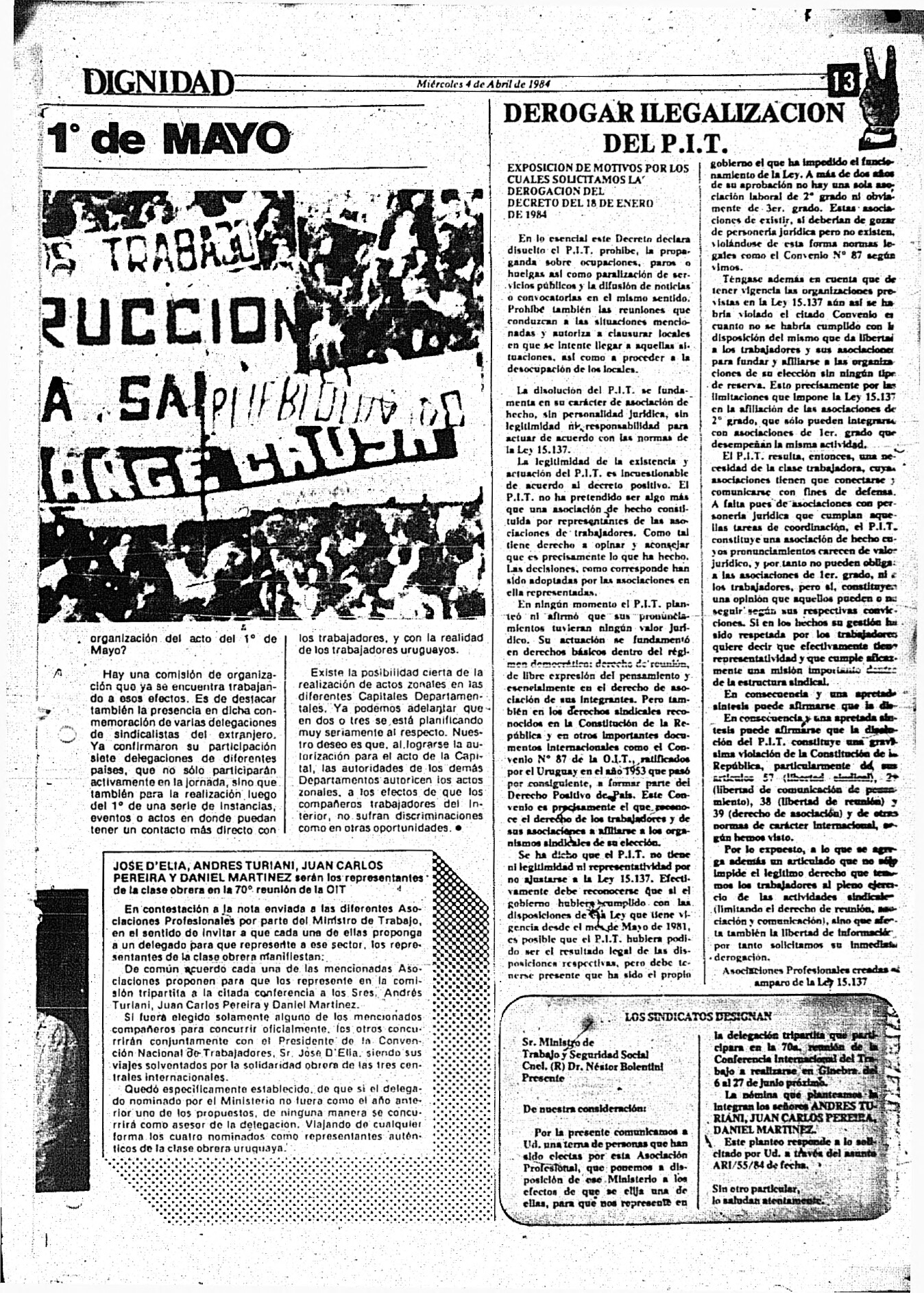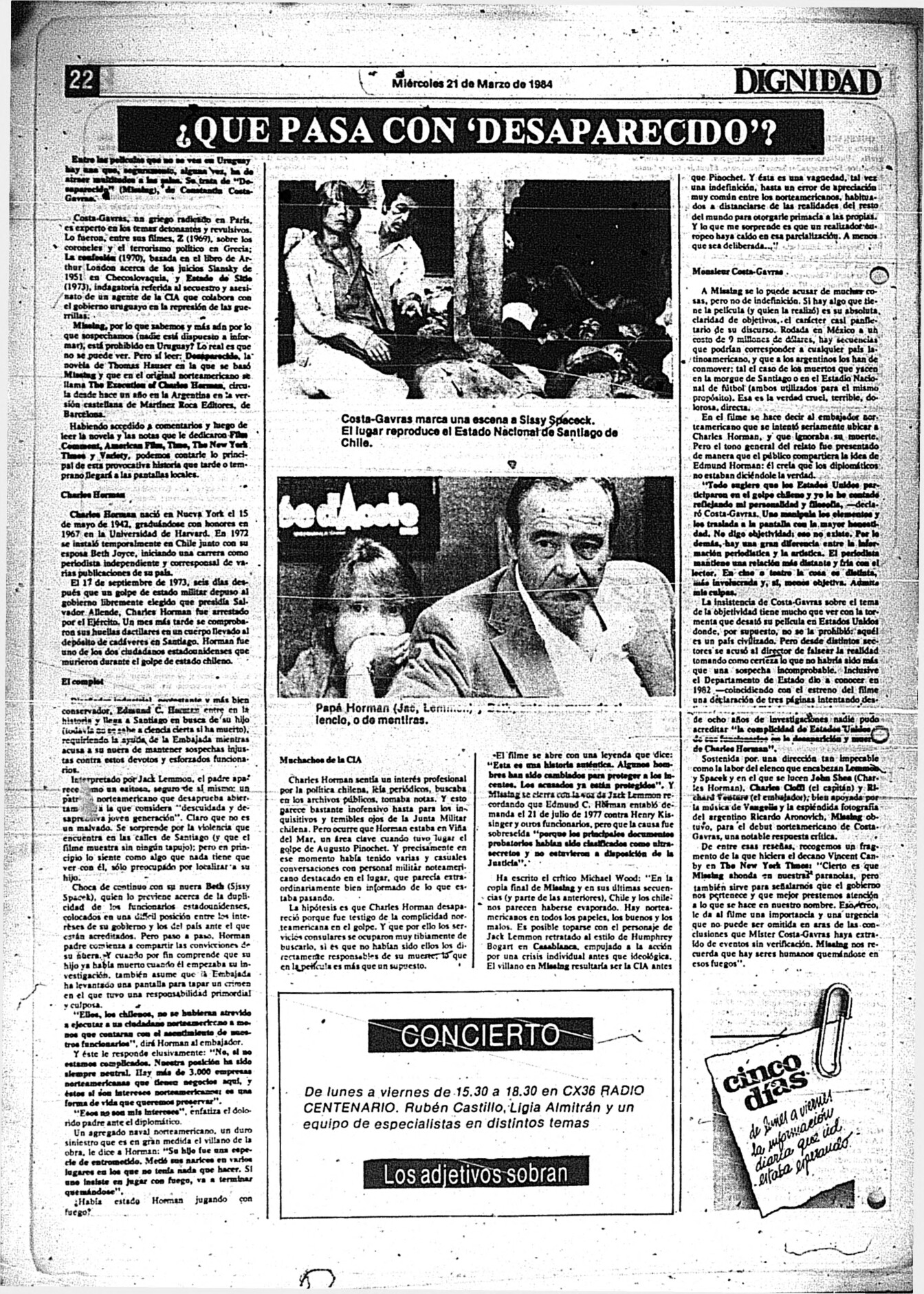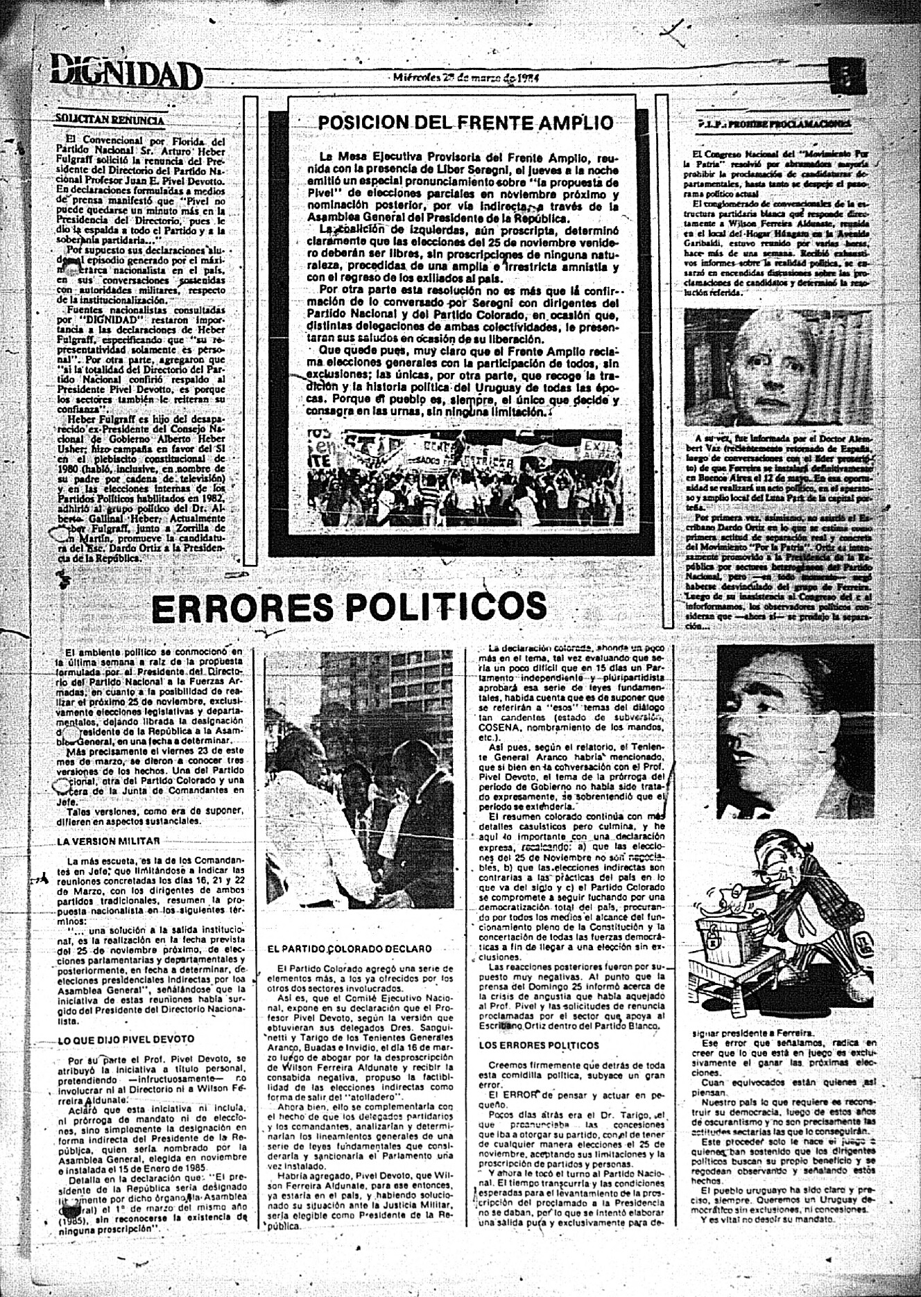Esta nota, publicada el 22 de abril de 1984, constituye una nueva reproducción por parte de El País, de la versión oficial sobre hechos represivos de la dictadura. A través de un comunicado de la DINARP (Dirección Nacional de Relaciones Públicas), el diario reproduce la versión militar sobre la muerte de Vladimir Roslik, un médico de San Javier, intentando encubrir lo que hoy se reconoce como el último asesinato por tortura de la dictadura.