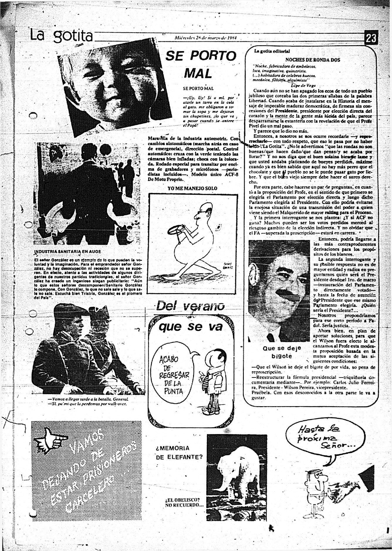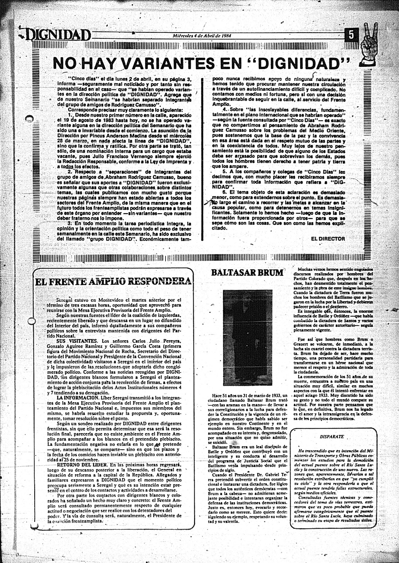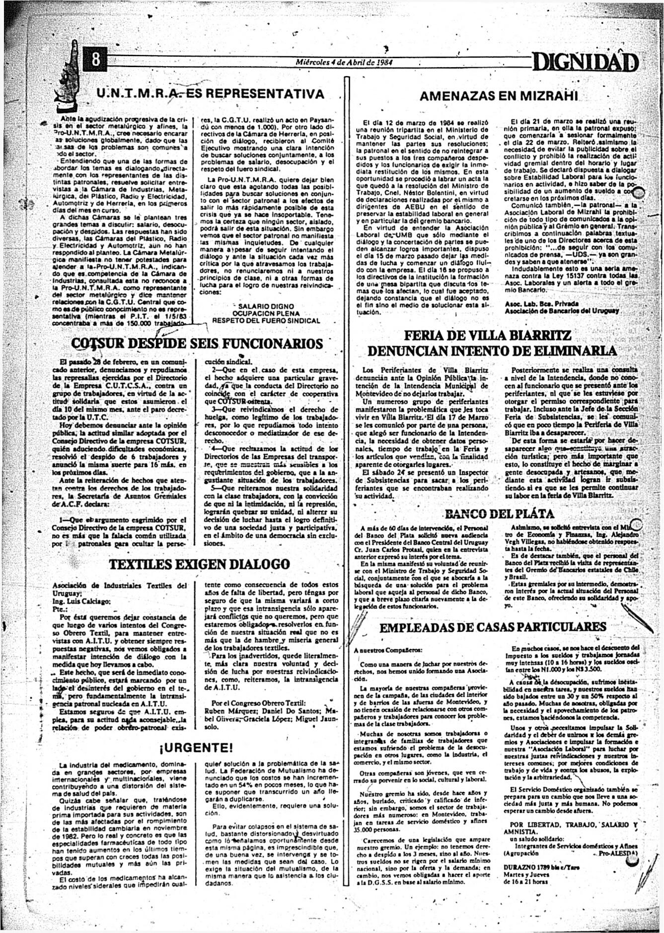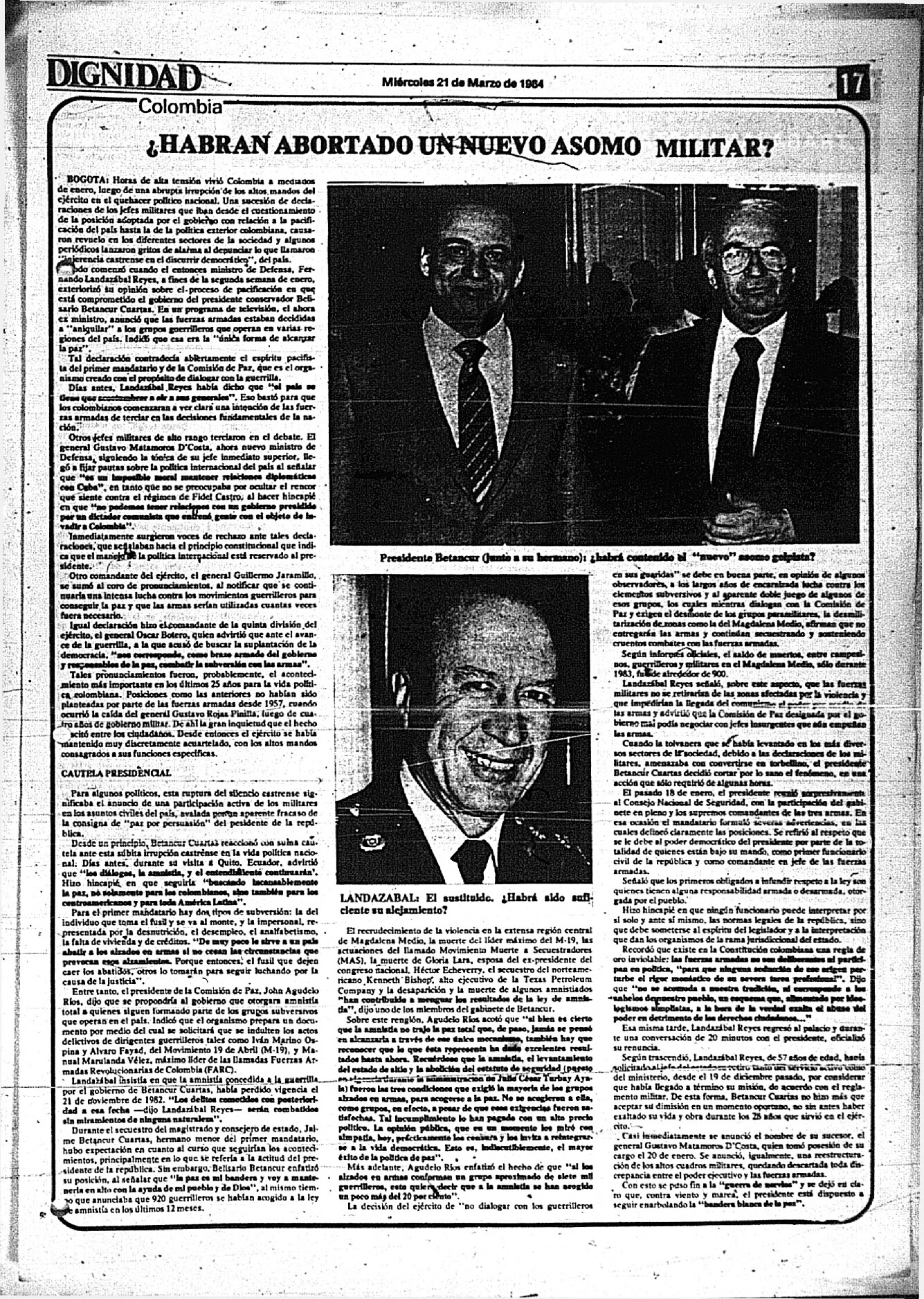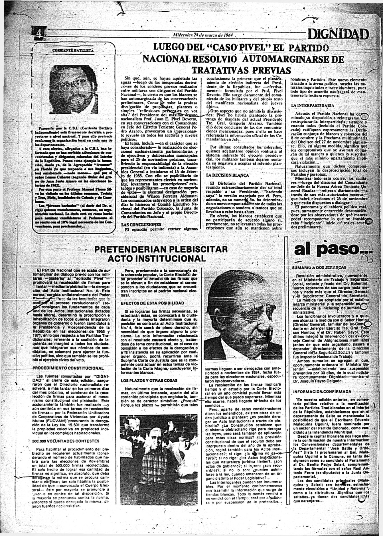 Esta nota, publicada el 22 de abril de 1984, constituye una nueva reproducción por parte de El País, de la versión oficial sobre hechos represivos de la dictadura. A través de un comunicado de la DINARP (Dirección Nacional de Relaciones Públicas), el diario reproduce la versión militar sobre la muerte de Vladimir Roslik, un médico de San Javier, intentando encubrir lo que hoy se reconoce como el último asesinato por tortura de la dictadura.