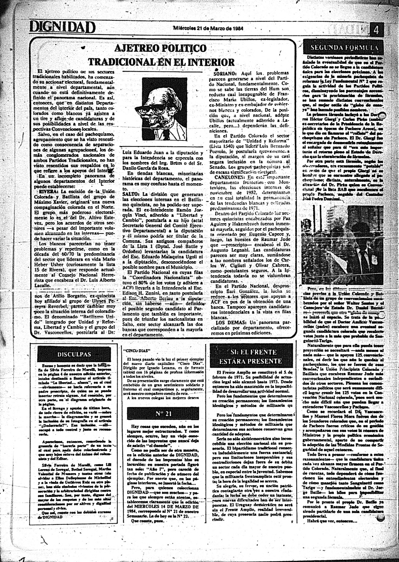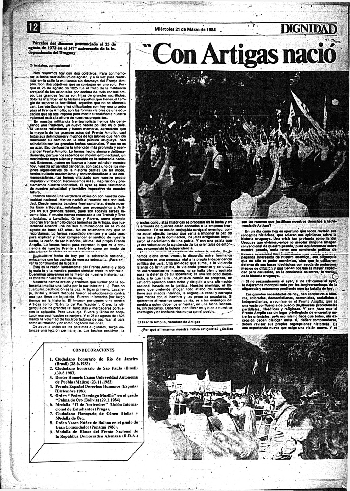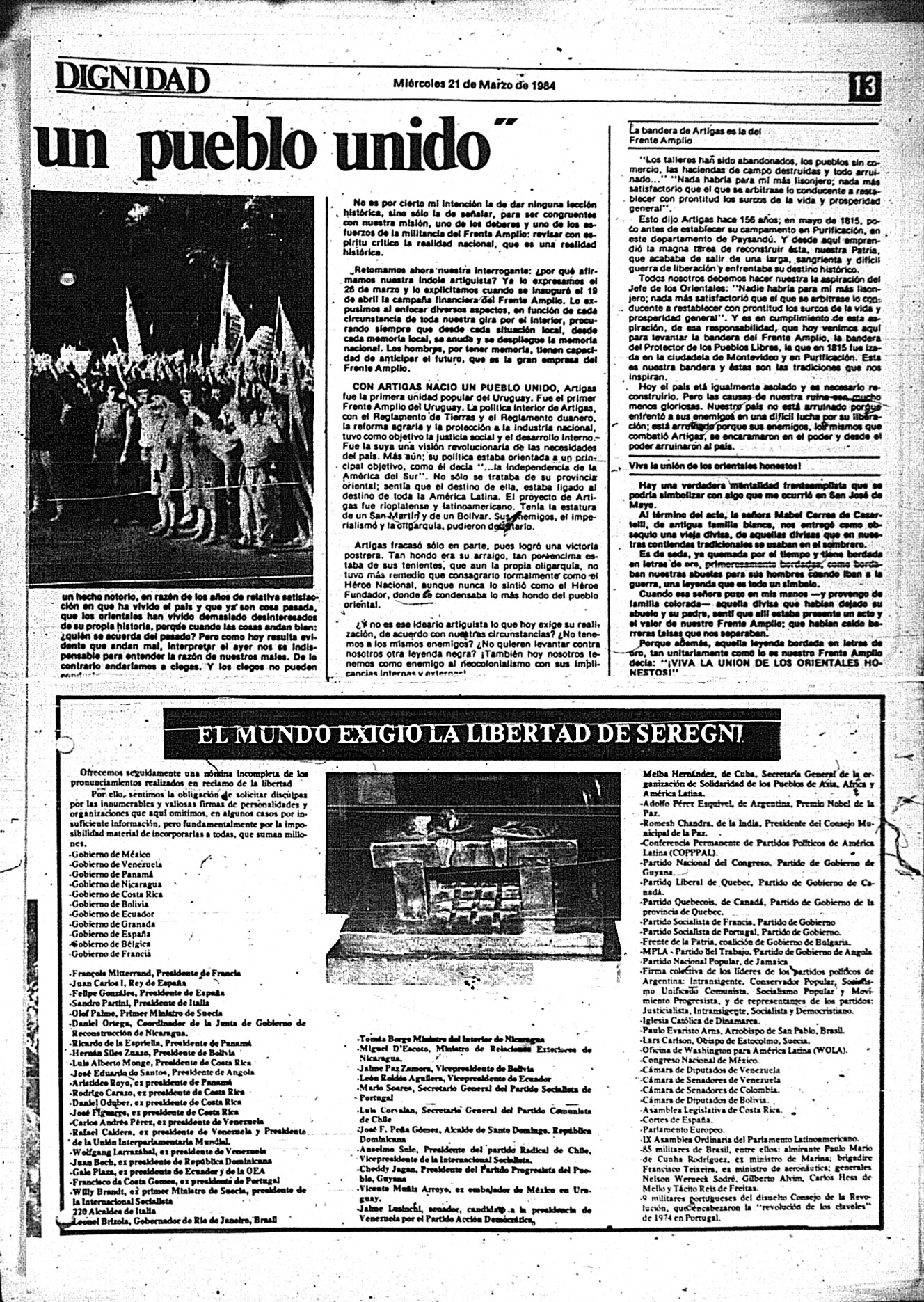 Encartado dentro de este número apareció un afiche 'por el reencuentro de los orientales'.