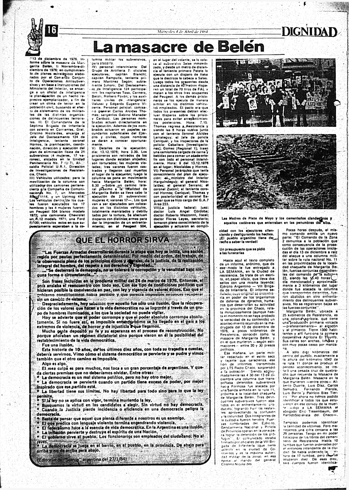 En esta página se presentan ejemplares completos de publicaciones periódicas (diarios, revistas, semanarios, etc.), así como notas extraídas de estos ejemplares, que generalmente se vinculan a otros contenidos del sitio web, como víctimas, lugares de detención, etc.