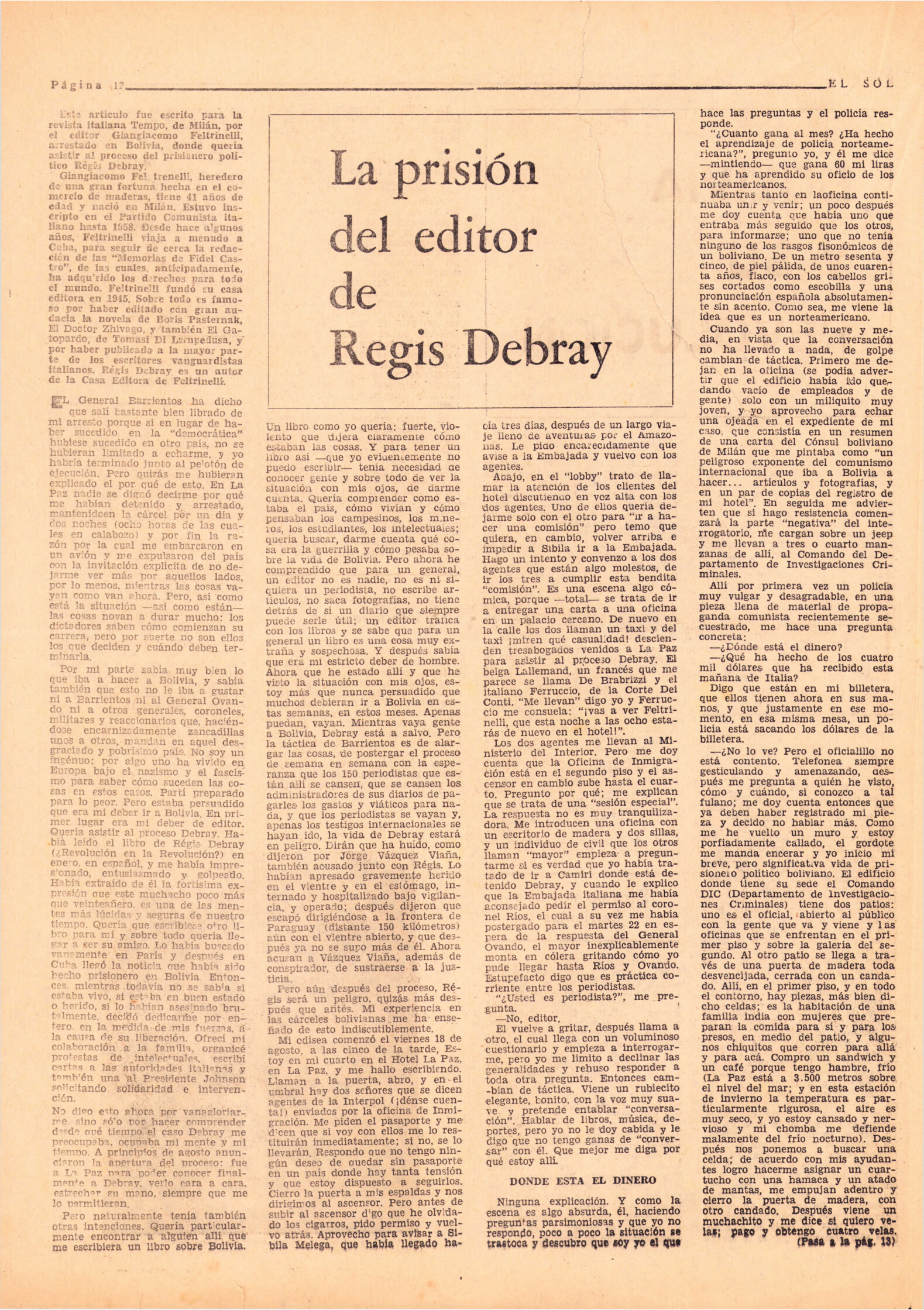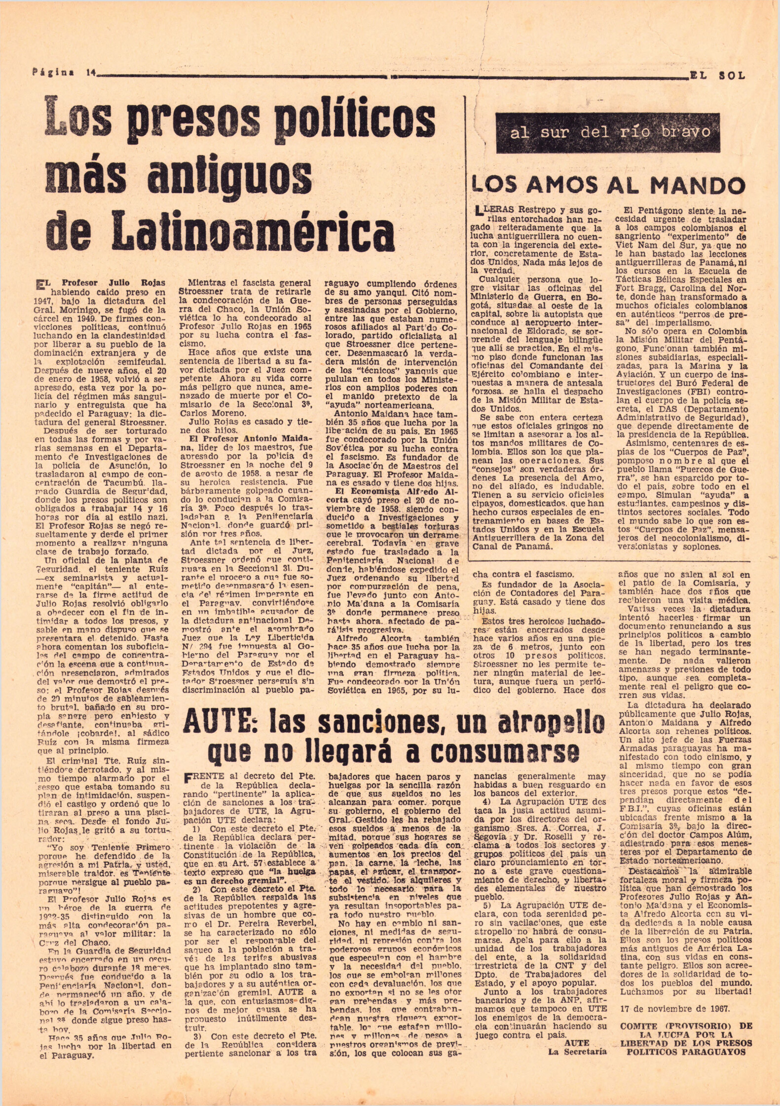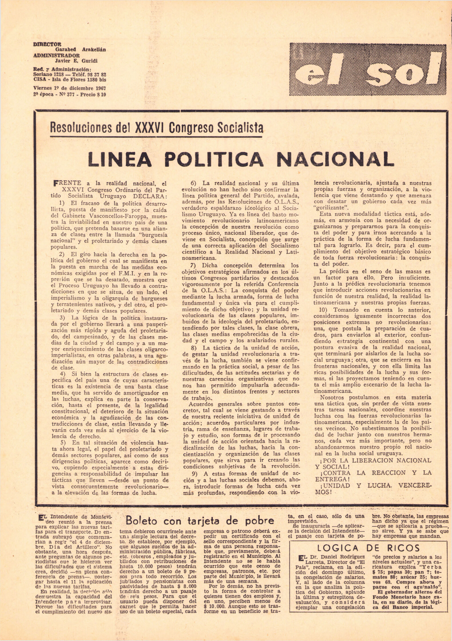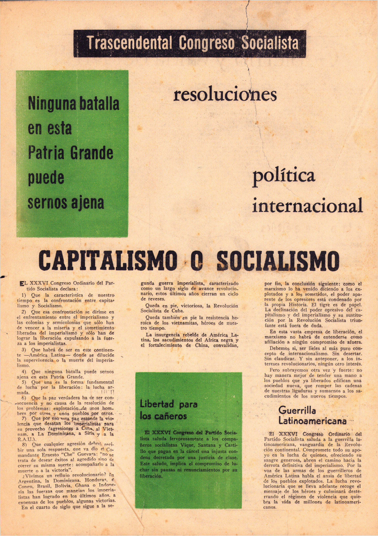 Publicación del diario Época del discurso de Fidel Castro en el acto de clausura de la Conferencia de la Organización Latinoamericana de Solidaridad (OLAS) que tuvo lugar el 10 de agosto de 1967. Esta publicación, editada en algún momento entre agosto y diciembre de 1967 convocaba a las reuniones pro reapertura del diario Época.