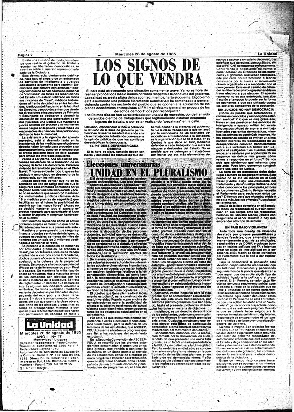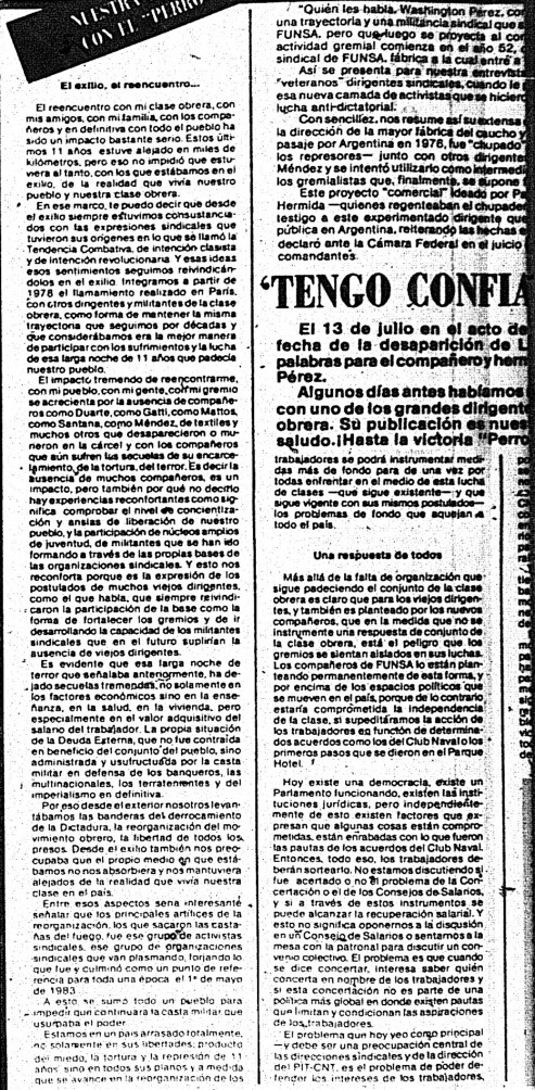 En su testimonio detalla su secuestro en Argentina, su detención ilegal y torturas en Automotores Orletti de Argentina, su traslado clandestino a Uruguay y detención en los centros clandestinos de Casona de Punta Gorda y la sede del Servicio de Información de Defensa en Uruguay y finalmente su presidio en Punta de Rieles.