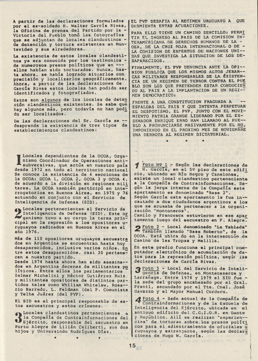 En ese lugar, en noviembre de 1978 estuvieron secuestrados los ciudadanos uruguayos Universindo Rodríguez Díaz, Lilián Celiberti y los dos pequeños hijos de ella, Camilo y Francesca. Luego de ser torturados fueron trasladados en forma clandestina a Uruguay.