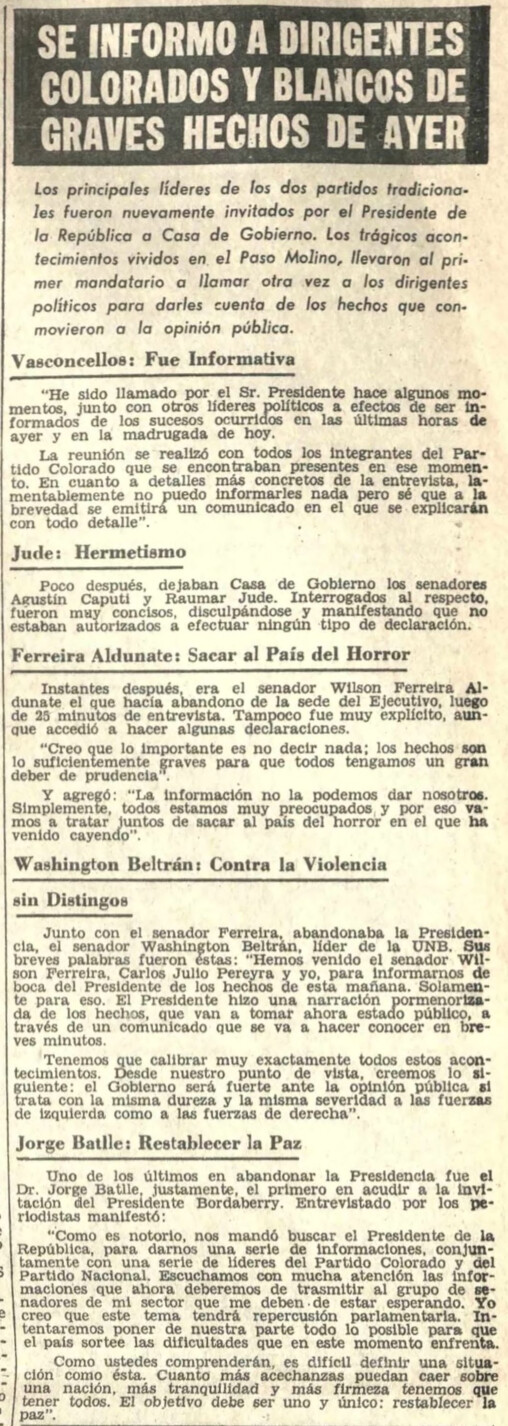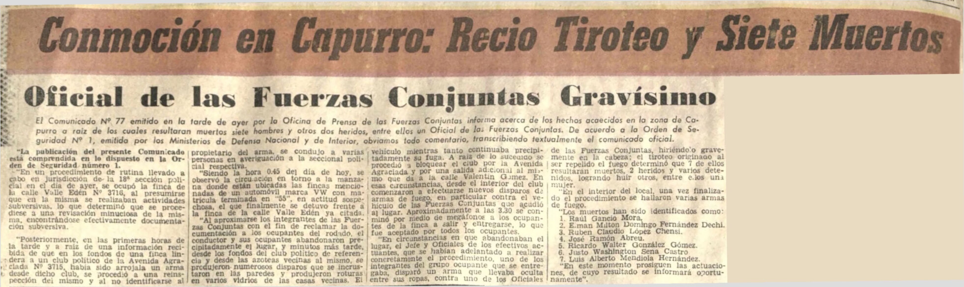 El 17 de abril de 1972 en un local partidario del Partido Comunista de Uruguay, ubicado en la zona de Paso Molino del Departamento de Montevideo, fueron ejecutados ocho militantes en el marco de un operativo de las Fuerzas Conjuntas.