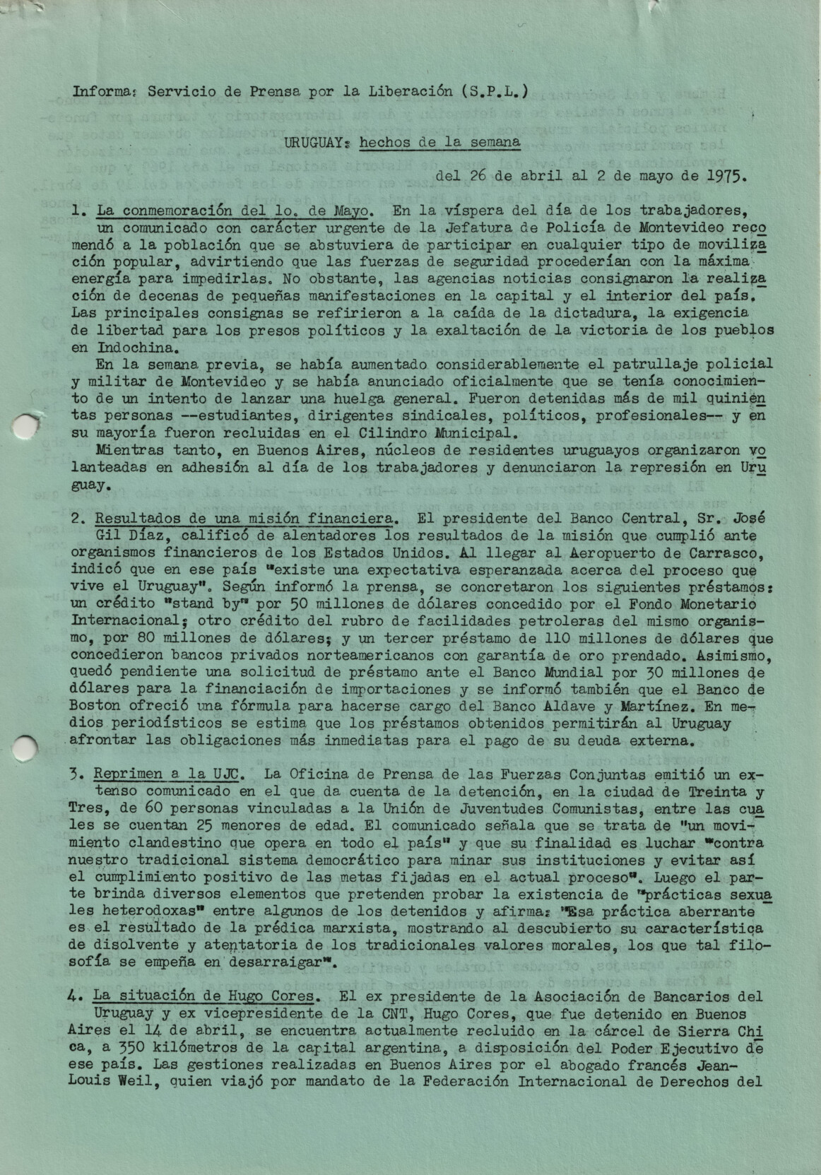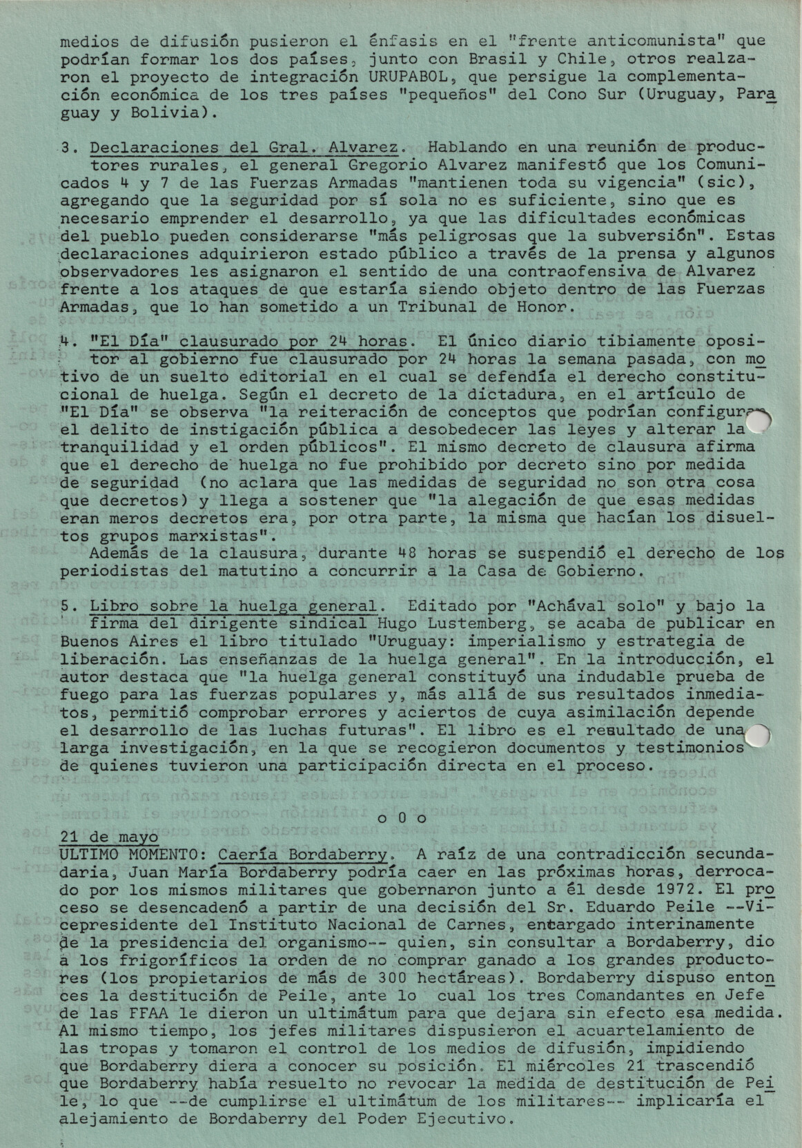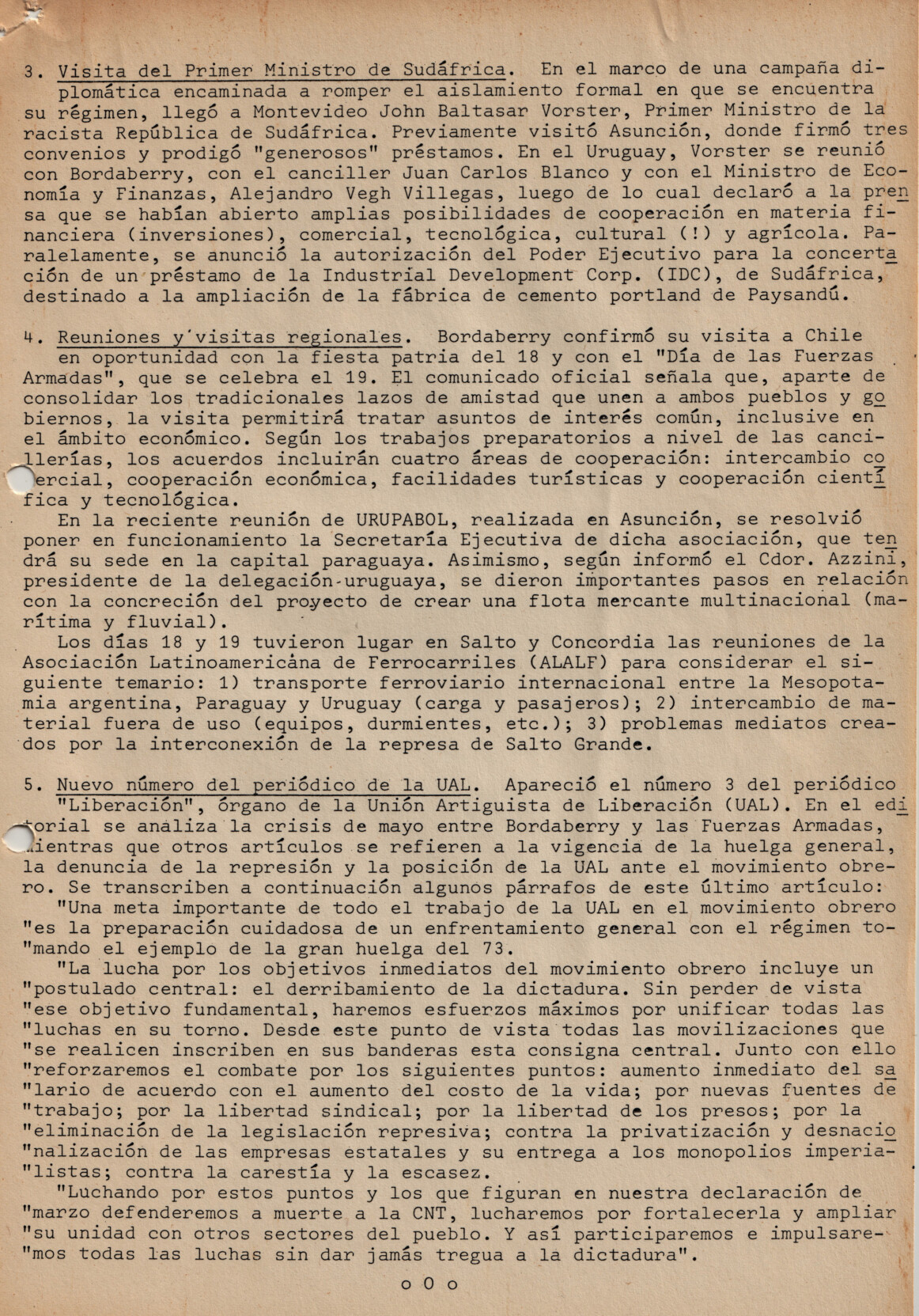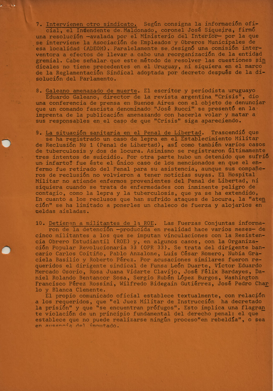 El ejemplar no está fechado, pero menciona que al cierre de la edición fue detenido el dirigente del PIT y del gremio de la salud Andrés Toriani. Esta detención se produjo el 11 de setiembre de 1983.