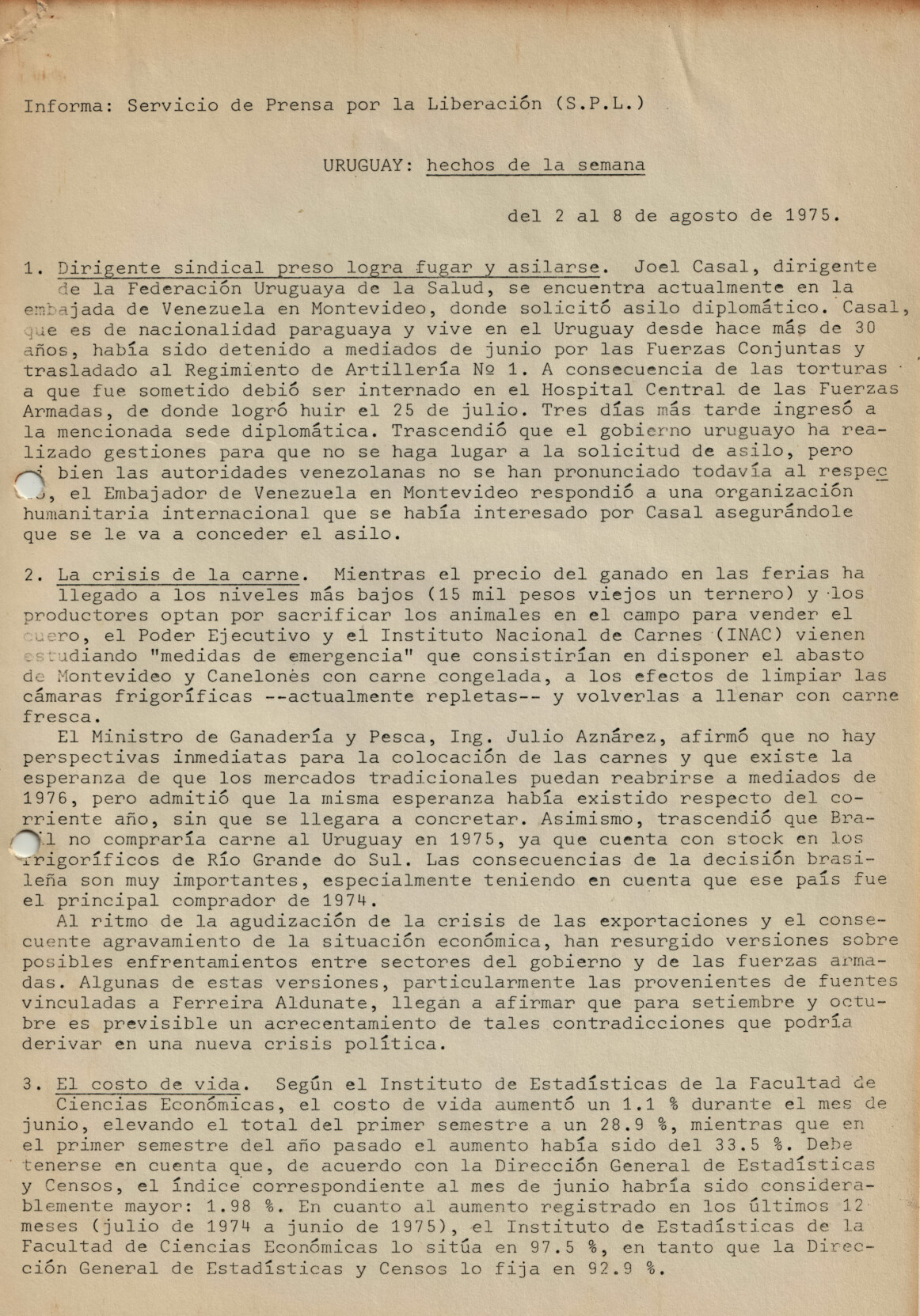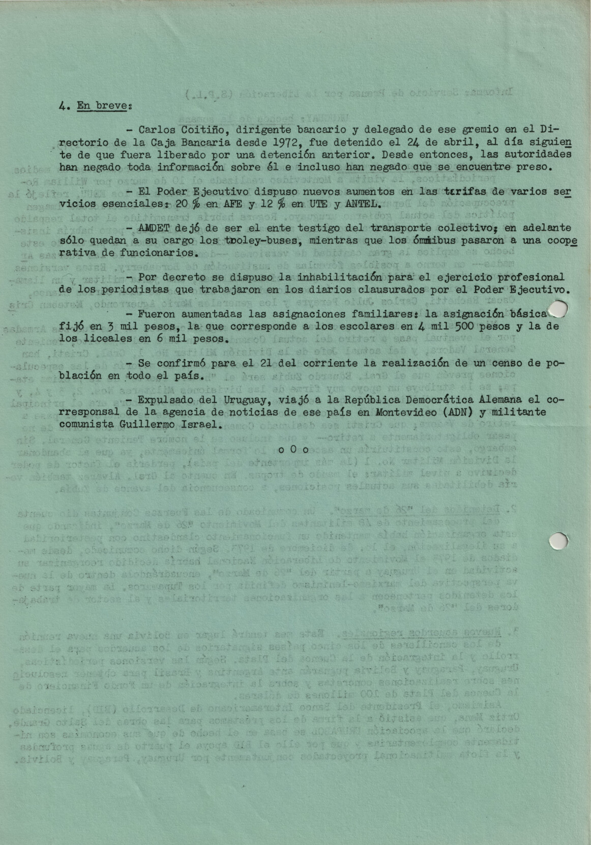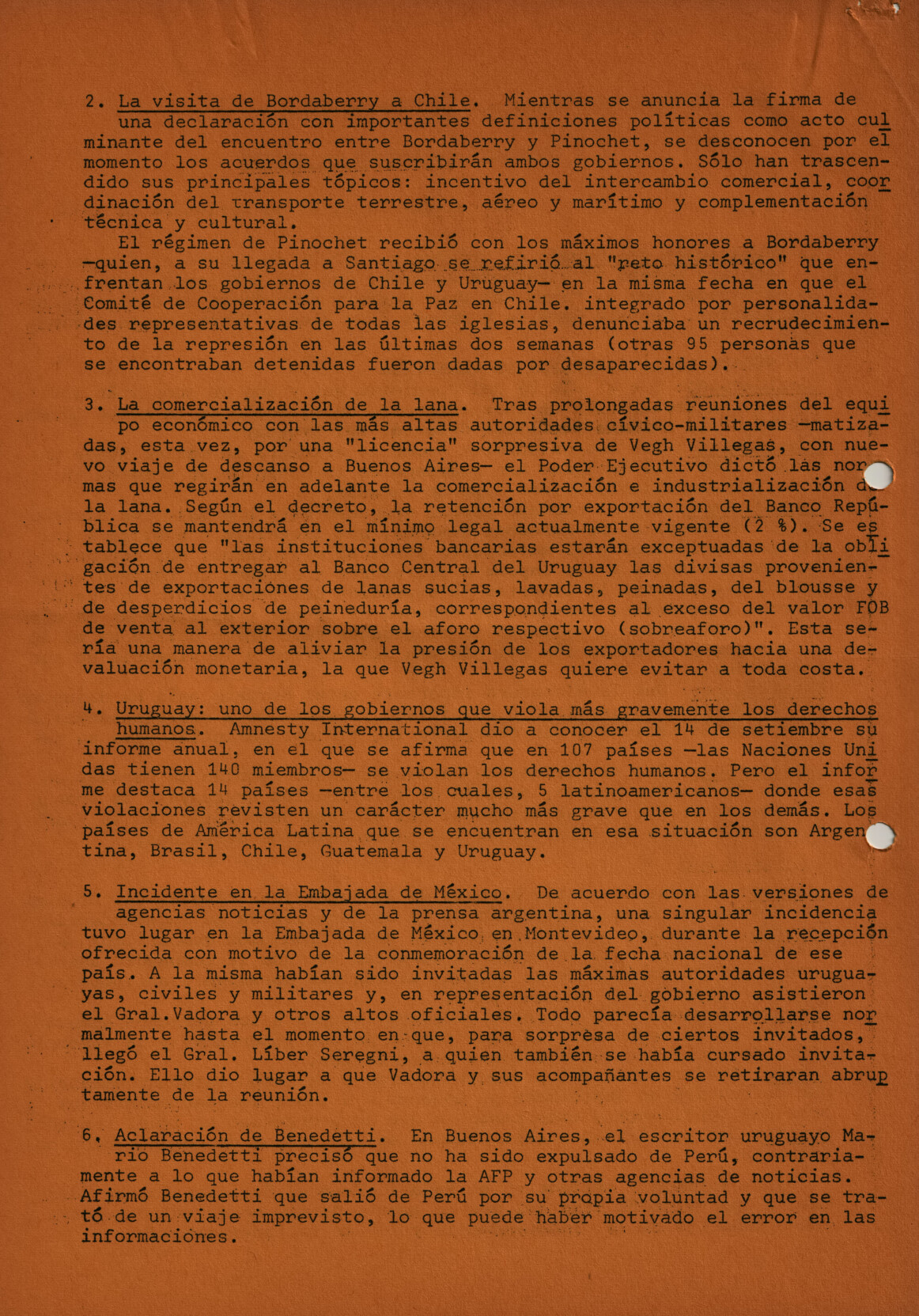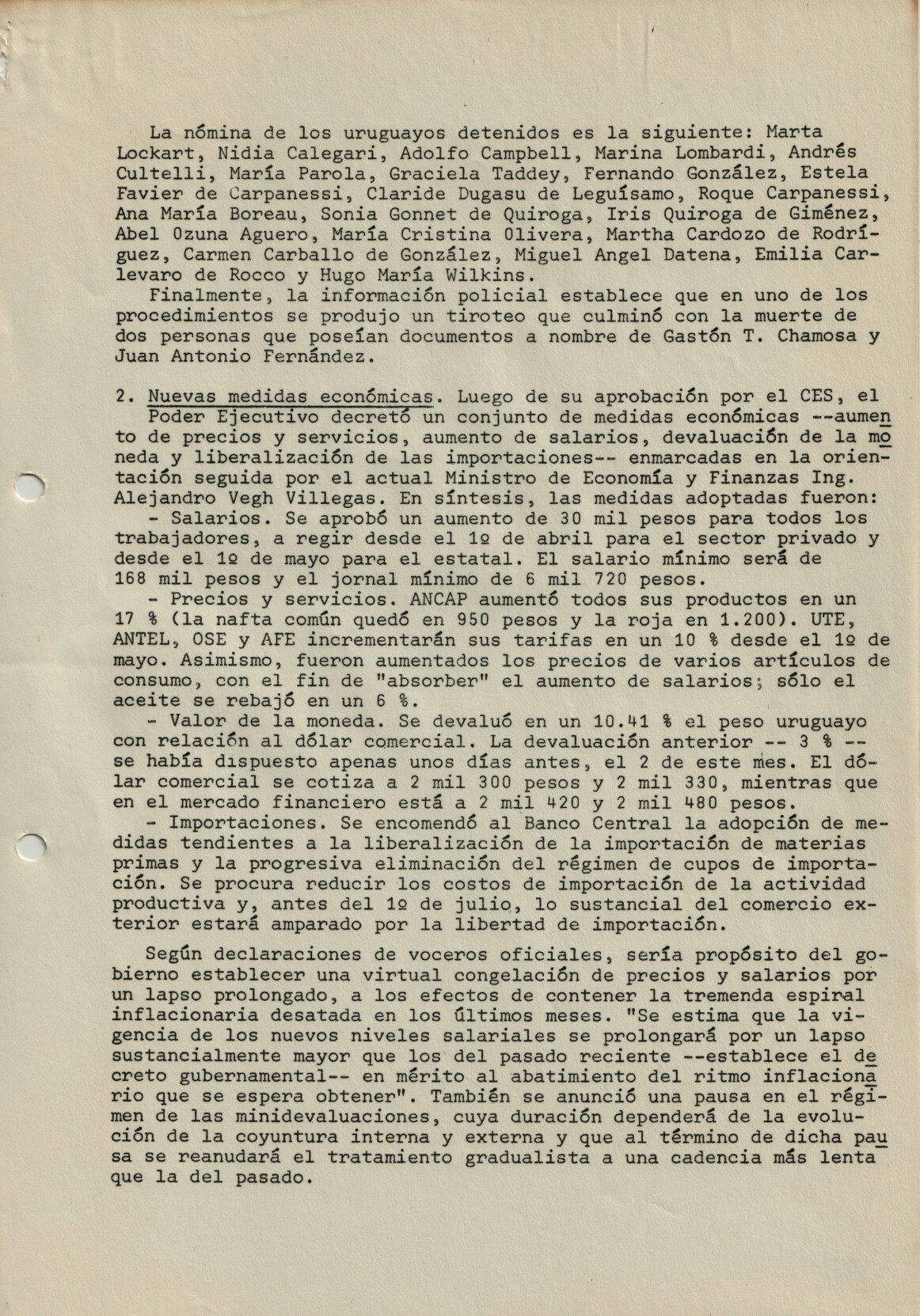 El ejemplar no está fechado, pero menciona que al cierre de la edición fue detenido el dirigente del PIT y del gremio de la salud Andrés Toriani. Esta detención se produjo el 11 de setiembre de 1983.