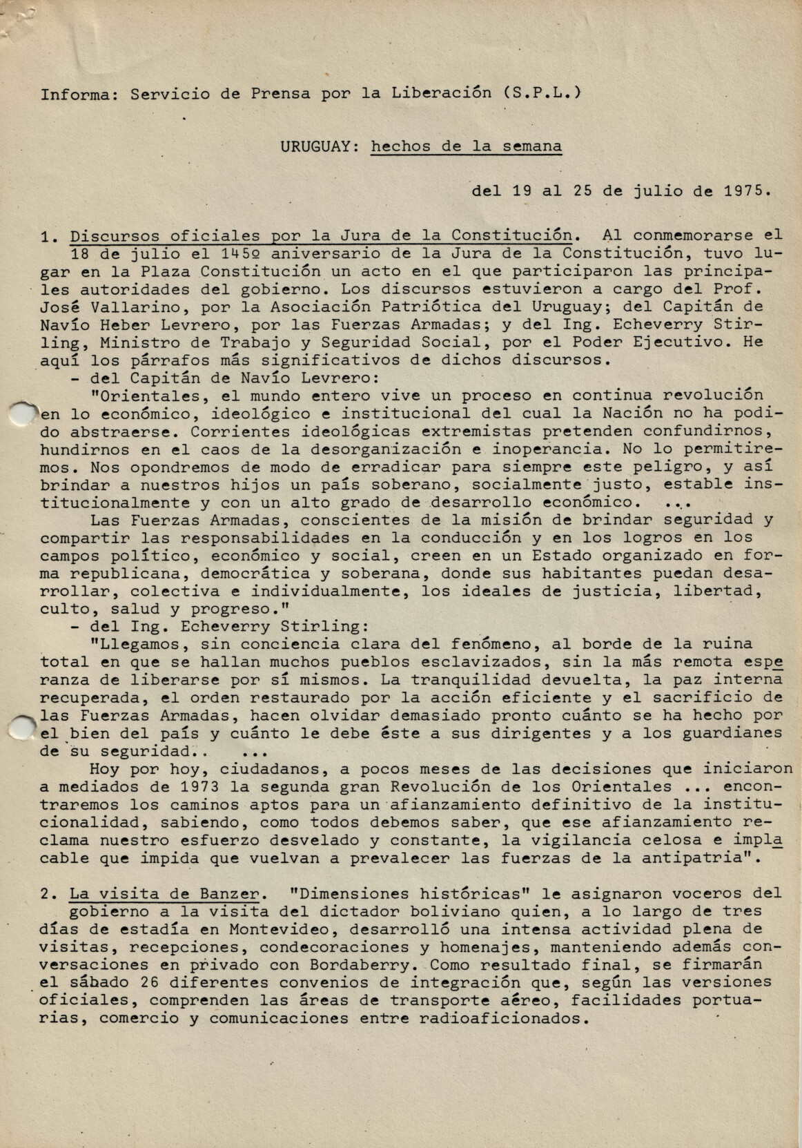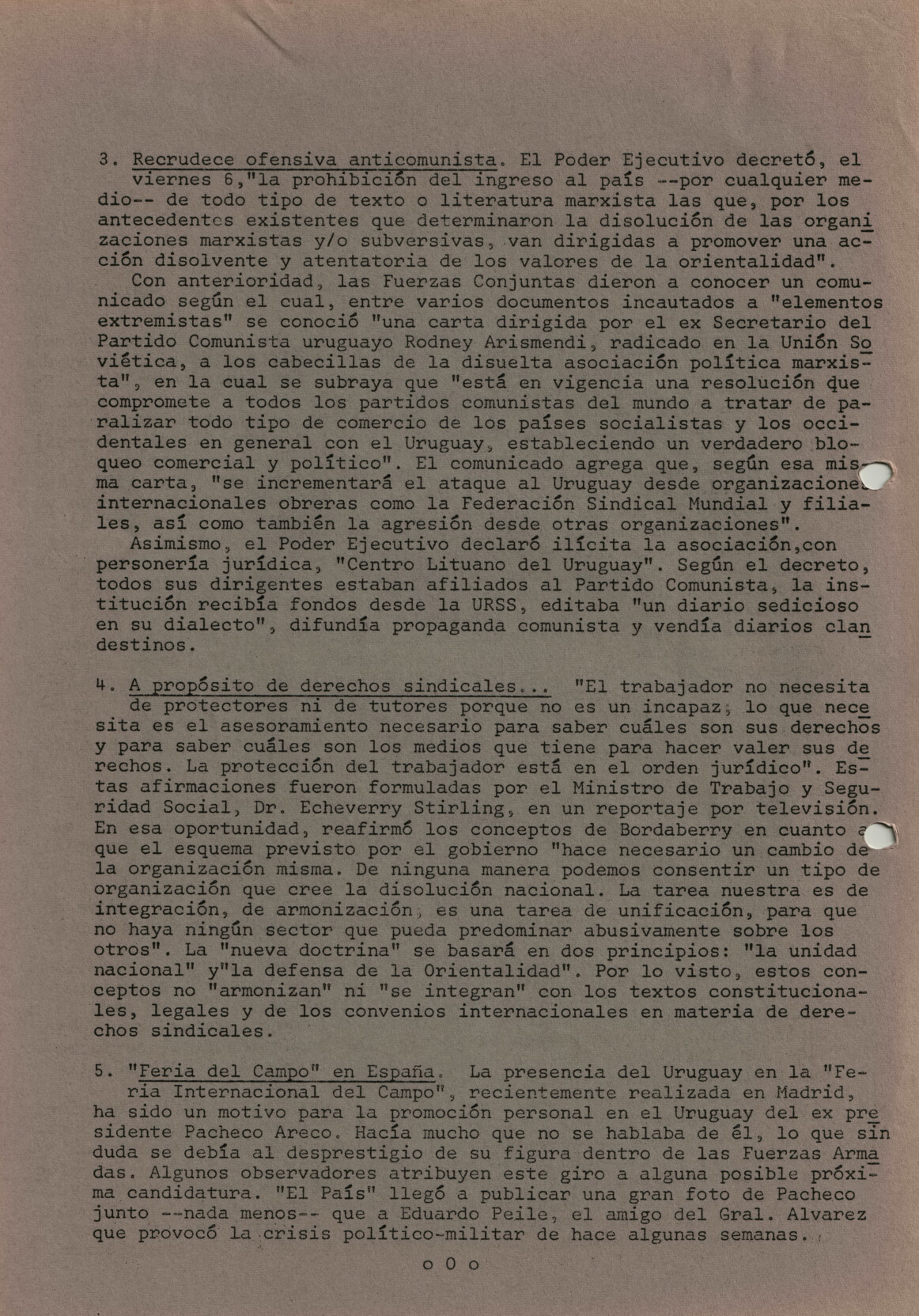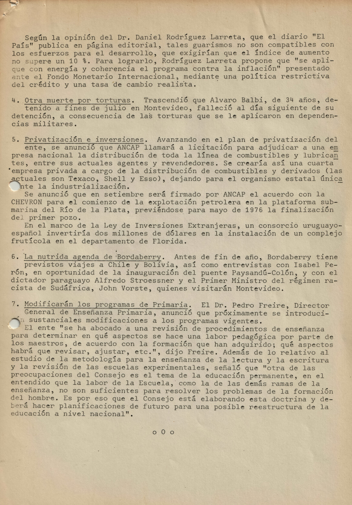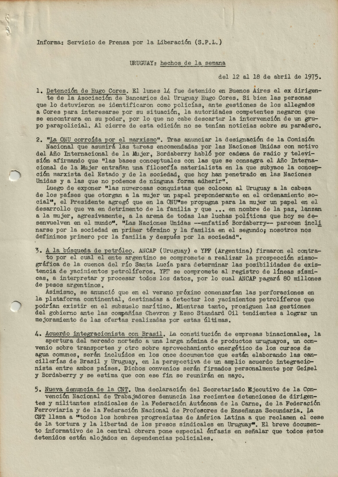 El ejemplar no está fechado, pero menciona que al cierre de la edición fue detenido el dirigente del PIT y del gremio de la salud Andrés Toriani. Esta detención se produjo el 11 de setiembre de 1983.