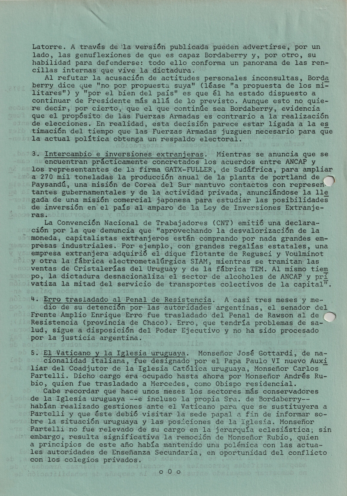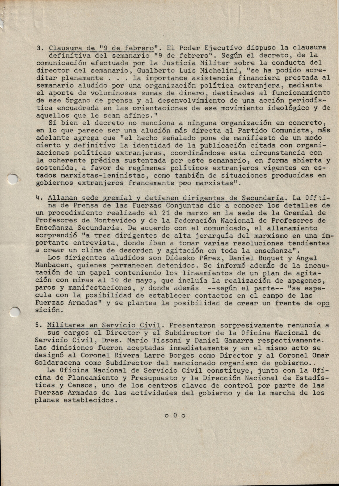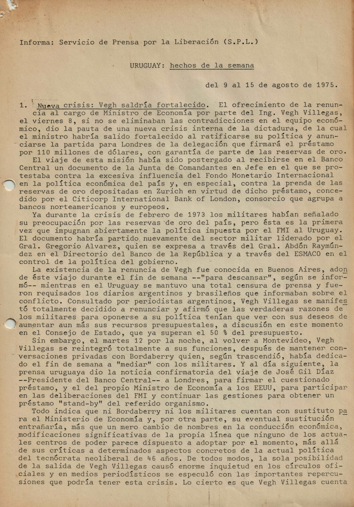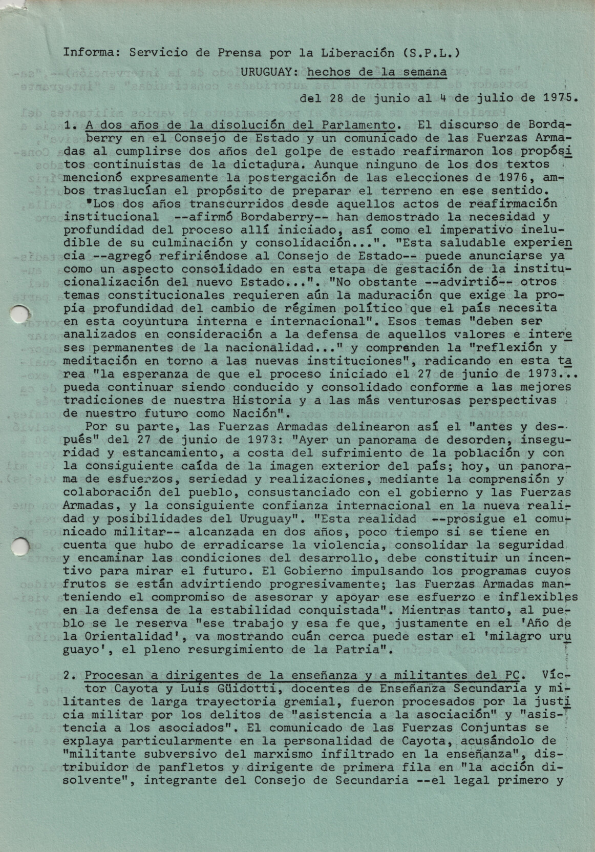 El ejemplar no está fechado, pero menciona que al cierre de la edición fue detenido el dirigente del PIT y del gremio de la salud Andrés Toriani. Esta detención se produjo el 11 de setiembre de 1983.