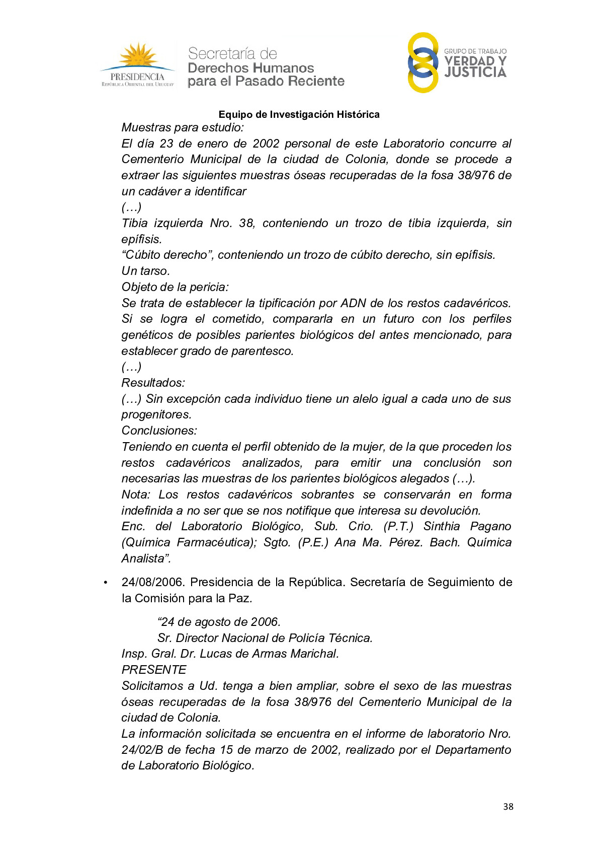 Ficha de la SDHPR sobre Walter Sanzo Bianchi